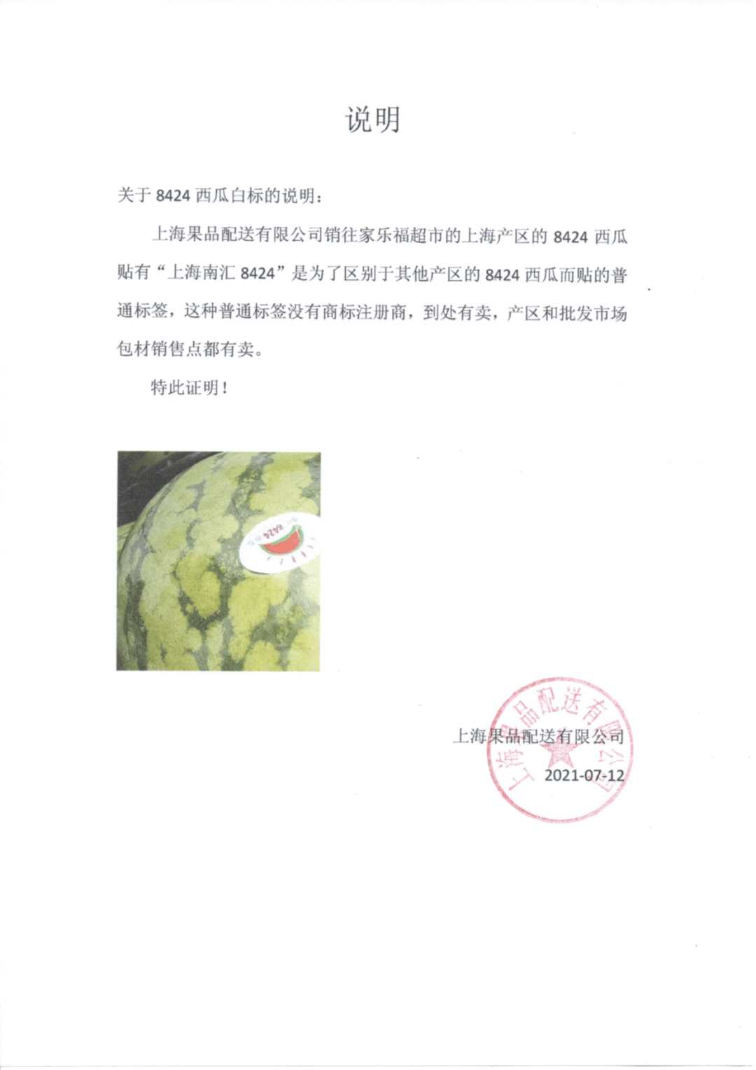 采购的散装西瓜均使用通用白色商标