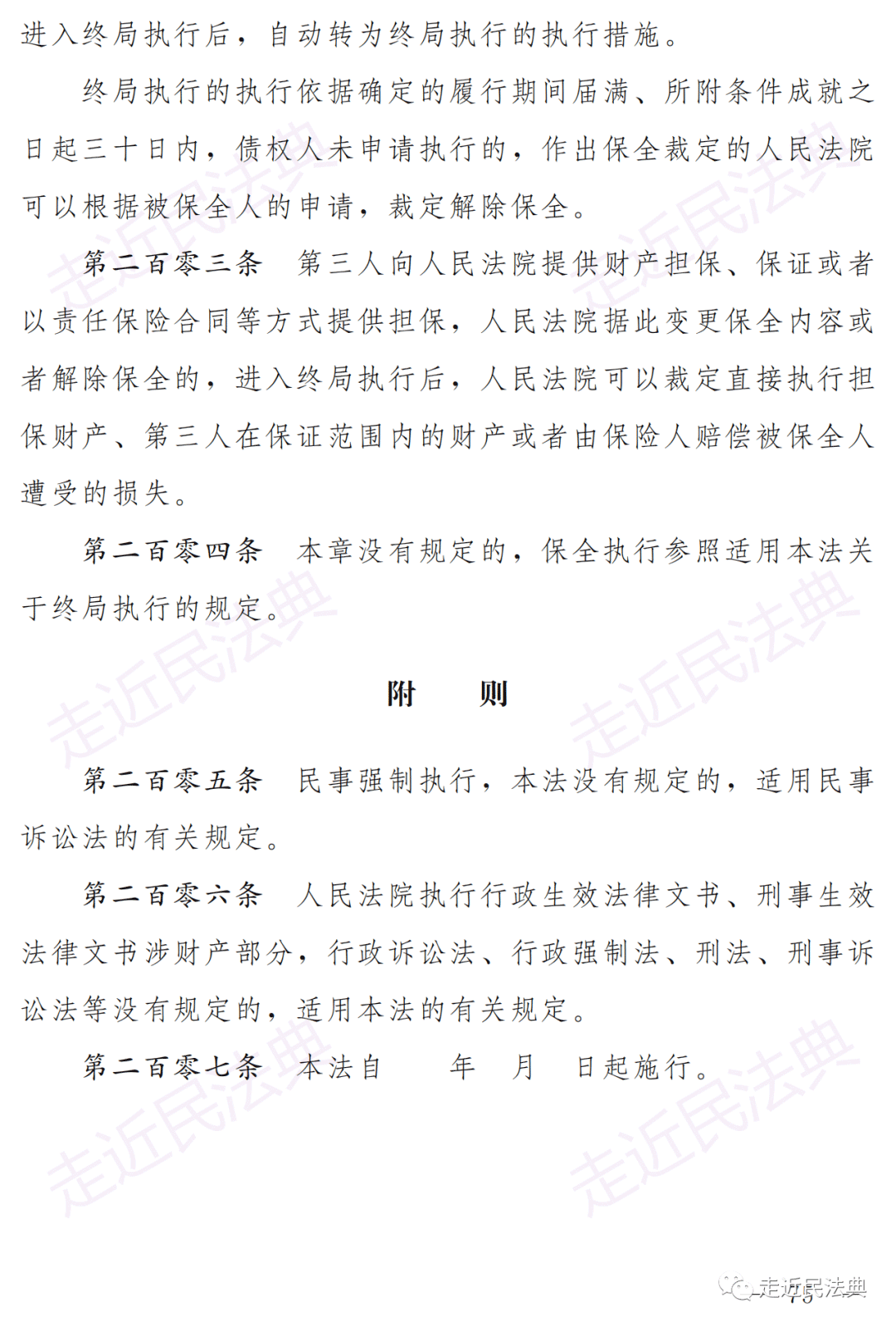 十三届全国人大常委会第三十五次会议6月21日至24日在北京举行,其中,有一项重要议程,即审议最高人民法院关于提请审议民事强制执行法草案的议案。6月24日,十三届全国人大常委会第三十五次会议闭幕,并民事强制执行法草案向社会公开征求意见。为便于了解,现将正在征求意见的民事强制执行法草案全文推送,欢迎了解。